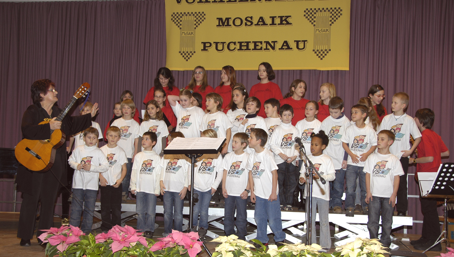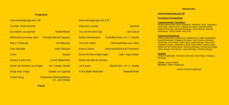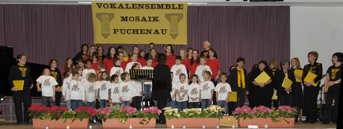 Adventkonzert am 12. Dezember 2008 (Für die größere Version bitte auf das Bild klicken.) Unsere Das Vokalensemble MOSAIK setzte mit nicht alltäglichen weihnachtlichen Melodien fort. Das bekannte Lied "Es ist ein Ros entsprungen" sangen wir in einer Fassung von Hugo Distler (1908-1942), die melodisch und vor allem rhythmisch besonderes Interesse weckt. Als Zugaben interpretierten alle Chöre gemeinsam "Kommet ihr Hirten" mit einem Satz von Carsten Gerlitz, "Ehre sei Gott in der Höhe" mit einem sechsstimmigen Satz von J. F. Doppelbauer und "Alle Jahre wieder" zusammen mit dem Publikum. Konzertplakat: