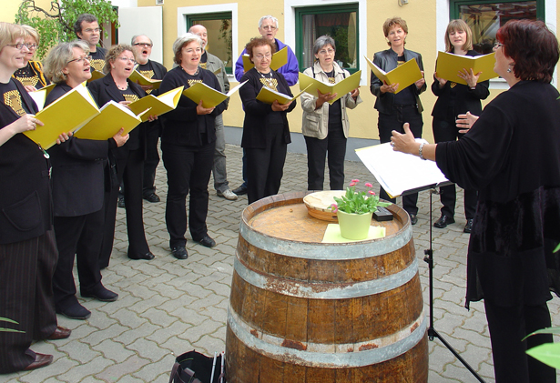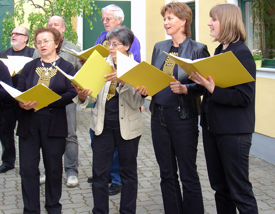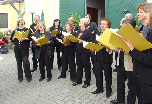 Februar 2009 Zurück zum Jubiläumsjahr 2008 ... Wechsel in der organisatorischen Leitung. Unsere Chorleiterin Andrea Engelberger mit dem neuen organisatorischen Leiter Bodo Heise und seiner Stellvertreterin Brigitte Eckl. Wein & Natur - Göttlesbrunn & Donauauen April 2009 (Durch Klicken auf ein Bild erhält man die große Version) Beim "Jungweinschnuppern" in Göttlesbrunn kann man bei mehr als 20 Winzern des Ortes die neuen Weine probieren (und natürlich auch kaufen).